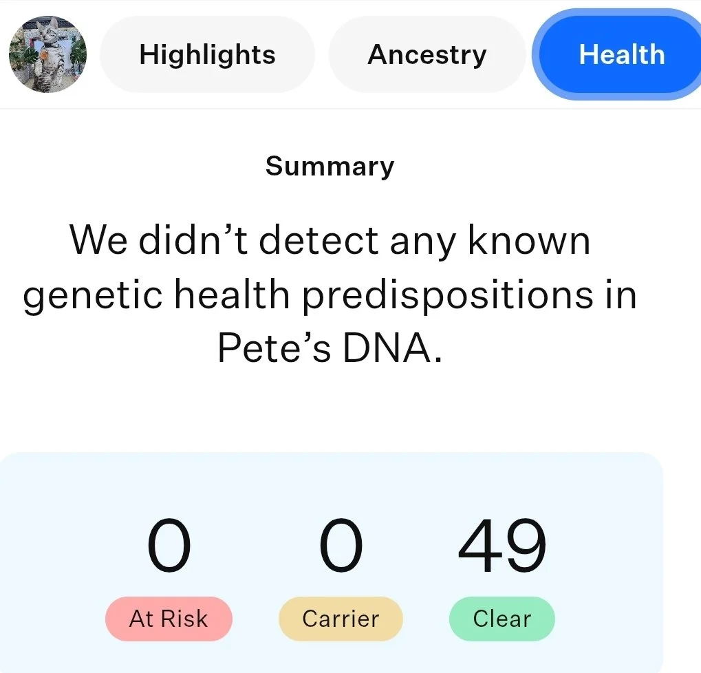 Pete is clear of genetic defects! He also passes his first HCM screen in December of 2025. He is clear of congenital heart disease and HCM!